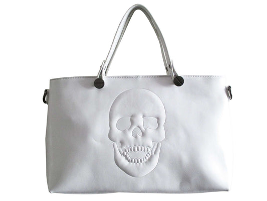 Mechaly Women's Skully White Vegan Leather Skull Handbag