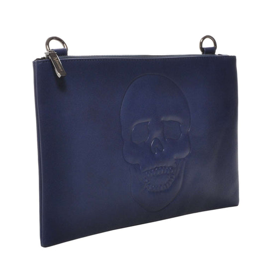 Mechaly Women's Skully Blue Vegan Leather Skull Clutch Crossbody Handbag