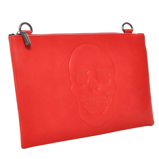 Mechaly Women's Skully Red Vegan Leather Skull Clutch Crossbody Handbag